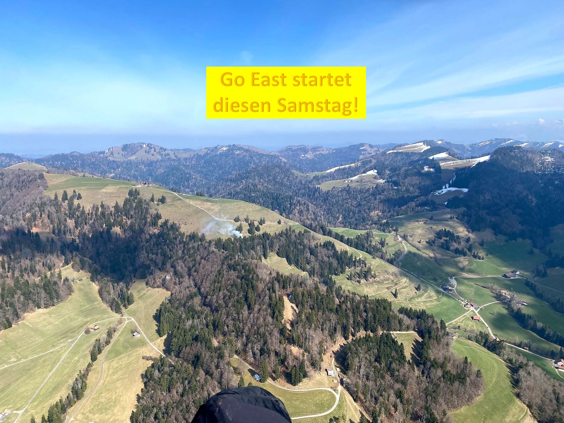 Go East ist ein familienfreundlicher 2-Tages Fun Hike-and-Fly Wettbewerb und beginnt Samstags um 10:00 Uhr in Wald ZH. Wer bis Sonntag,18:00 Uhr am weitesten gekommen ist, gewinnt.