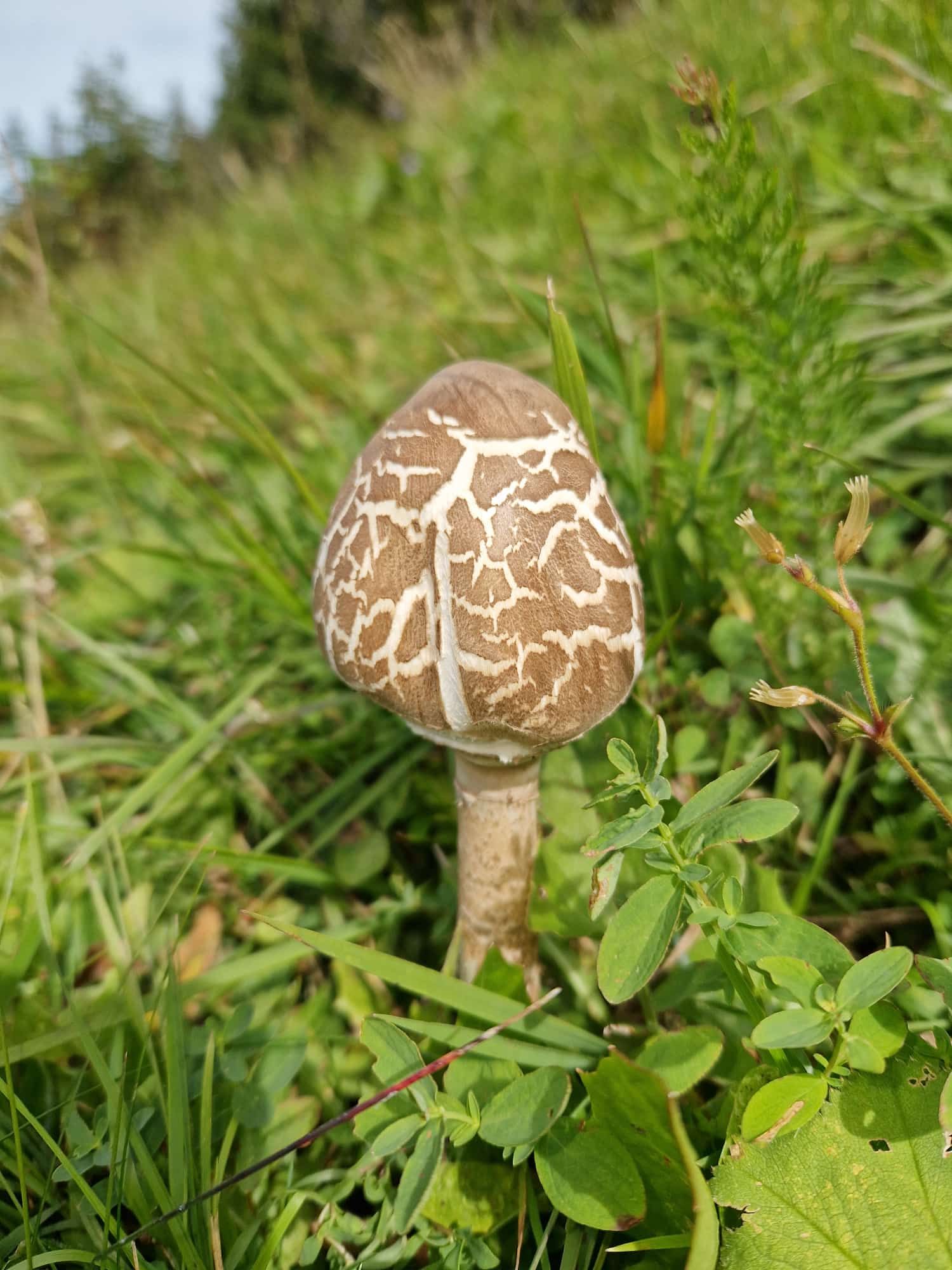 Auf rund 1'600 Metern treten wir aus dem Wald auf eine Almwiese, die bis zu unserem Startplatz reicht. Hier wachsen Pilze – Urs findet sogar einen schönen Parasol – und die Kühe liegen gemütlich in der Sonne. Nach knapp zwei Stunden erreicht auch die Geniessergruppe das Bächlichamm. Wir sind auf über 2'000 Metern.