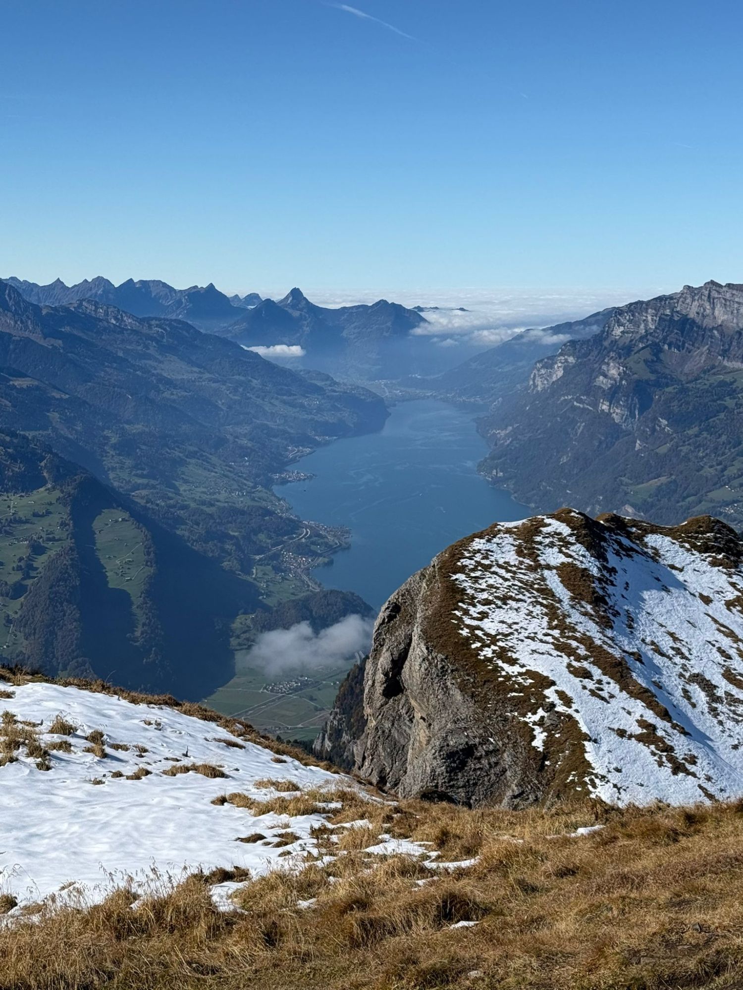 Meine Hoffnung war das natürlich auch. Nach einem steilen und schweisstreibenden Aufstieg war der Ausblick wunderschön bis sagenhaft! Nur das Rheintal war immer noch mit Nebel überzogen. Zum Glück ist Walenstadt in der Sonne so konnten alle beim Landeplatz dort landen. Nur zwei mussten nach Buchs fliegen, da es sich aber über Sewelen aufgelockert hat, konnte man super unter den Deckel Fliegen und so die zwei Fahrzeuge zurückholen.