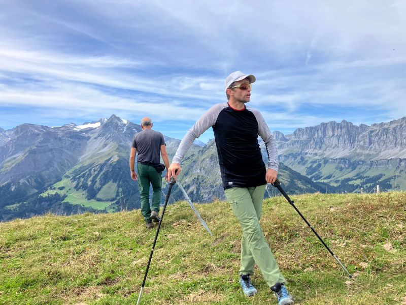 Wir laufen vom Parkplatz auf 1'200 Metern Höhe los. Die Schnelleren vorneweg, die Geniesser hinterher. Der Weg bietet wunderschöne Ausblicke: auf den im Gletschereis glänzenden Tödi, auf Braunwald und den Urnerboden, auf den schroffen Ortstock gegenüber – und rechts davon auf den allen Piloten bekannten Gumengrat, wo immer wieder helle Flecken auftauchten, die kurze Zeit später in die Luft verschwinden: Also auch dort wird geflogen.