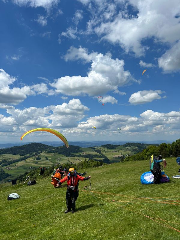 Wer sich jetzt noch besser auf das Rennen vorbereiten möchte, tut dies am besten mit Hike und Fly selbst. Bähnlifahren ist gestrichen 😅! Neben den Höhenmetern übt man das Handling der Ausrüstung gleich mit. Besonders spannend ist, ein "Doppel" zu versuchen. Zum Beispiel: Start an der Scheidegg, dann am Farner oder Bachtel möglichst hoch landen, packen und zum nächsten Startplatz laufen. Somit ist das ganze Procedere gleich zweimal geübt. Passen Schuhe und Stöcke, müssen mehr Wasser und Riegel eingepackt werden, was kann ich weglassen und was besser machen? Ein solcher Probelauf mach Spass und die gewonnene Erfahrung ist Gold wert.