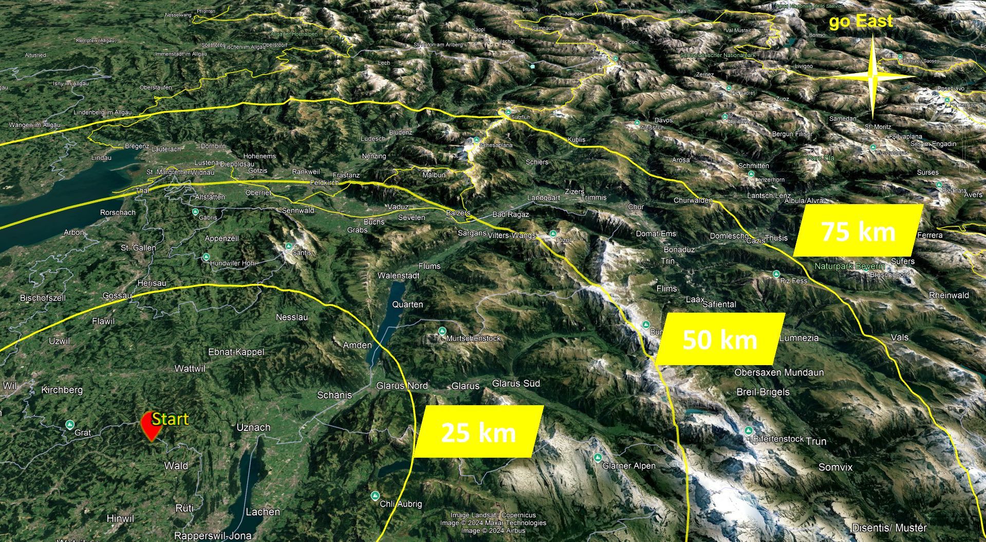Go East ist ein familienfreundlicher 2-Tages Fun Hike-and-Fly Wettbewerb und beginnt Samstags um 10:00 Uhr in Wald ZH. Geflogen wird ab der Alp Scheidegg. Wer bis Sonntag,18:00 Uhr am weitesten gekommen ist, gewinnt. Der Sieger erhält einen Pokal. Weitere Überraschungspreise winken.